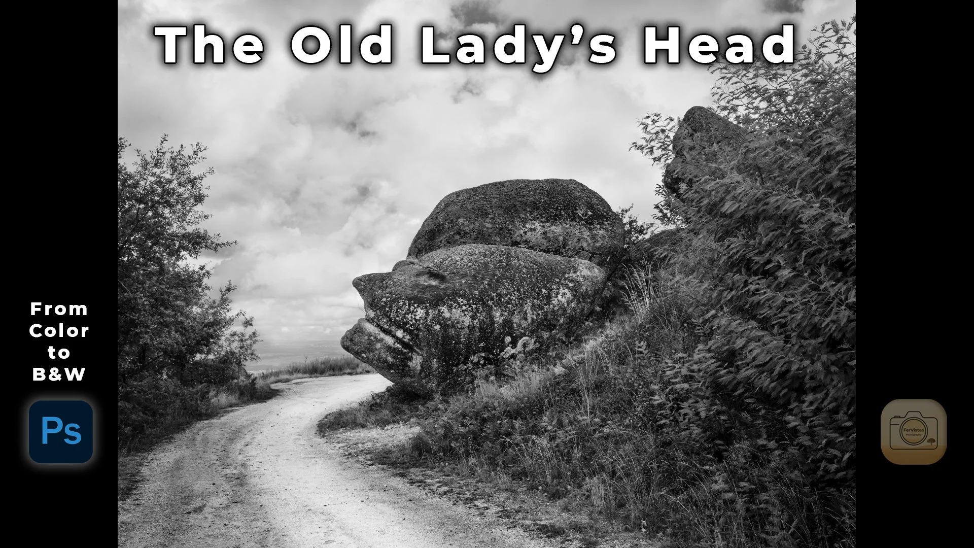Learn how to edit a photo from color to black & white using Camera Raw and Photoshop. My subject is a rock known as the Old Lady’s Head, and at the end I’ll show the finished print on Hahnemühle Photo Rag 308.