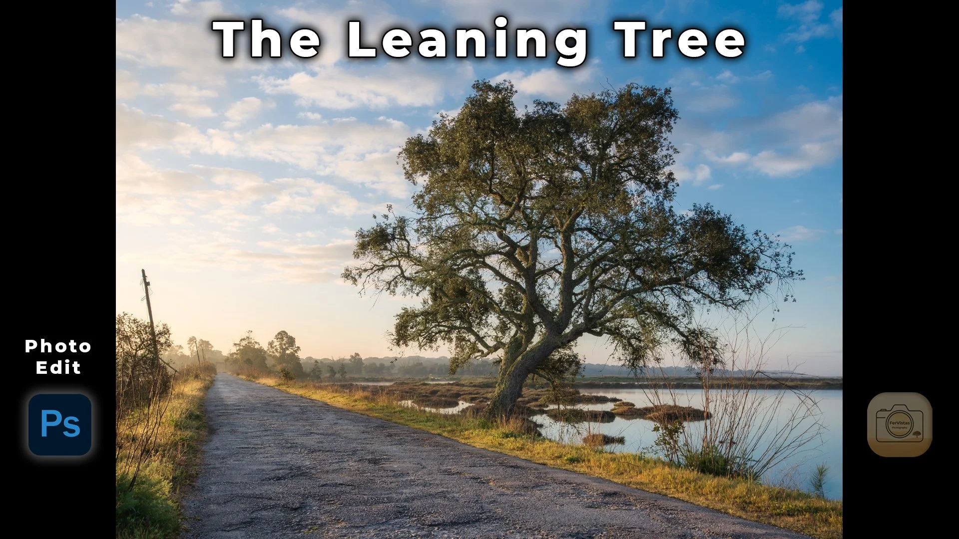 Editing a quiet roadside tree leaning toward the river. Turning a dark, flat RAW file into the calm scene I saw that morning. Camera Raw and Photoshop bring balance, depth, and subtle cleanup while keeping a natural look.